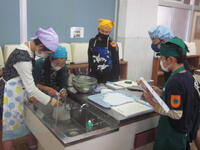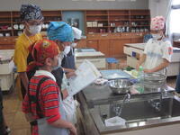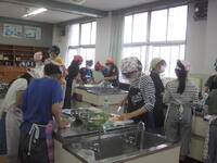 「あれ?キャベツってどこまでむいたらいいの?」「洗剤って、どこに置いておけばいいの?」など、友達と確認しながら進めていました。