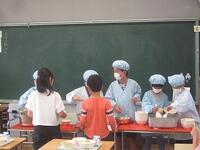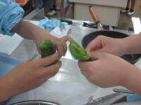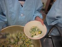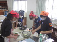 にんじん、ピーマン、キャベツ等を洗ったり切ったりしながら、班の友達と分担していきます。