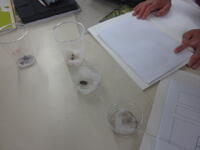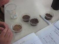 今日は、豆の発芽について学習しました。どのような条件を満たせば発芽するのか、班の友達と一緒に考えます。