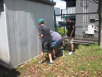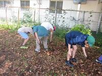 環境・園芸委員やボランティアのみなさんが、体育館周辺の草取りを行いました。