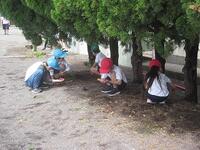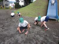 「根っこまで抜けたよ」「抜いても抜いてもまだあるね」など、友達と交流しながら活動する子供たちです。