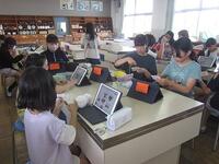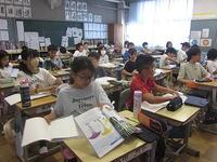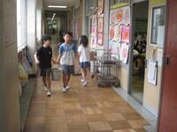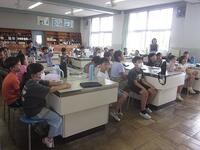 3年生が、夏休みに読むための本を図書室に借りに行きました。