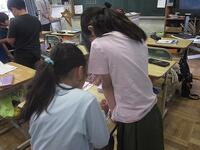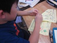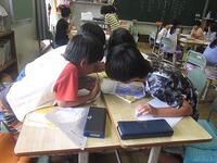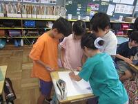 隣の席の友達と一緒になって、ていねいに見ていました。