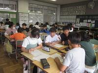 また、別のクラスでは、自分の考えをノートにまとめていました。じっくりと考えながら書くようすが見られました。