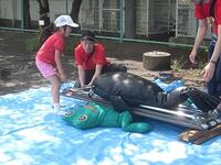 「重い~!」「水から出ると、さらに重くなる~!」と、率直な感想を伝え合ってました。