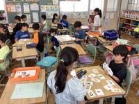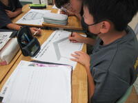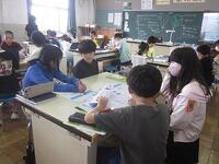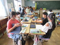 2年生が、生き物について調べ、ワークシートにまとめていました。