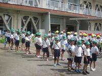 暑さが心配されましたが、子どもたちが出発する時間になると、曇り空に!