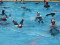 水の中で泳ぐことはもちろんのこと、フラフープにくぐったり、ボール拾いをしたりと、楽しく水に親しみました。