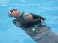 いざというときのために、仰向けになって浮く練習にも取り組みました。