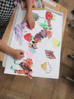 チラシのどこの部分を切り取るのか、どんな形に切り取るのか、一生懸命考えていました。