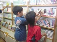 たくさんの本を見ながら、どの本を読もうかと選ぶ子供たちです。