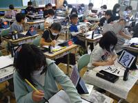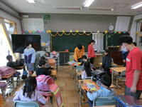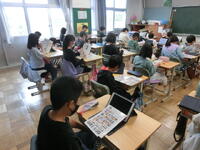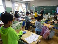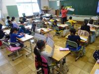 5年生の教室では、学級目標を決めているクラス、算数の学習を行っているクラスとありました。