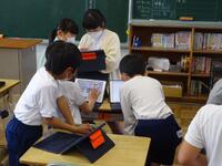 4年生の教室です。係決めをし、係の紹介をメタモジを使って作成していました。