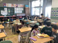 ペア活動がありました。4・5年生が、自分で選んだ本を、ペアの2・3年生に読み聞かせを行いました。読む練習をしっかり行って、今日は聞いているペアにわかりやすく読んであげようと丁寧に読んでいました。聞いている2・3年生は物語を聴き入っていました。