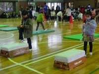後半は、「おやじと遊ぼう」です。体育館でピンポン球運び競争でした。おたま、スプーンを使ってピンポン球を運びました。最後は、おやじたちも一緒に入って楽しみました。