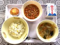 *牛乳 *バターライス *チリコンカン *ジュリエンヌスープ *手作りマフィン