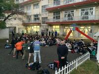子供たちは多くの先生方に囲まれ、緊張した様子でした。