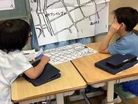 どんなところがあるかな?こんなところがあるよ!と、友達と地図を見ながら話しています。