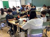 タブレット端末を使い、共同編集しながらまとめています。どんなアイディアが浮かんでくるのでしょうか?
