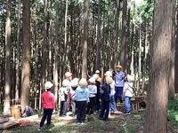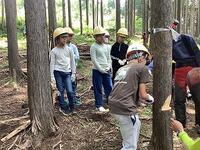 2日目のプログラムは、森づくり講座です。木を伐採する体験と森の中を散策する体験とを行いました。