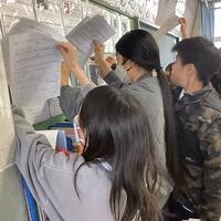 現在、高校生になった卒業生が南小に来校しました。