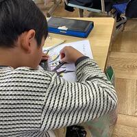 写真は、友達の書いた物語をじっくりと読んでいるところです。どんな展開が待っているのでしょうか?