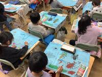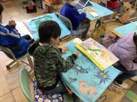 1年生は、図工で作品バックに思い思いの絵を楽しそうに描いていました。1年間で制作した図工の作品をバックの中に入れて持ち帰ります。