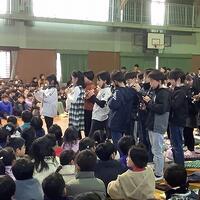 4年生は、みしまサンバとリコーダーで、6年生の思い出を振り返りました。