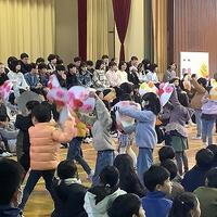実行委員会企画の「中学校へ行こうよ」と「ジャンボリミッキー!」では、1年生から6年生までのみんなで、ゲームや歌・ダンスで楽しみました。