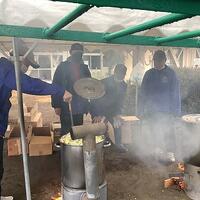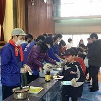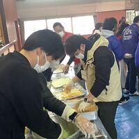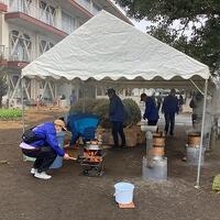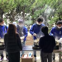 体育館外では、豚汁の提供もあります。からだが暖まりますね。
