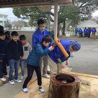 もちつき大会に参加している子供たちも、もちをつきはじめました。
