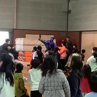 玉入れの玉を使い、体育館で鬼退治をしました。みんなは、どんな鬼をやっつけたいかな?