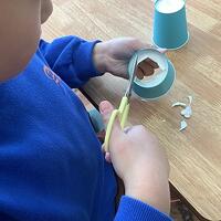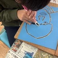 版画に色付けをしたり、紙コップを切っていたり、版画版を彫ったりしながら活動を進めました。