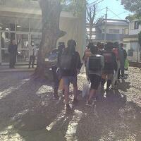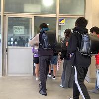 中学校に行くと、ソフトボール部の生徒たちが清掃をしながら、あいさつをして迎えてくれました。