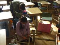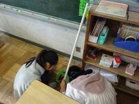休み時間の1年生の様子です。秋みつけで集めたどんぐりをつかったけん玉が流行っています。ひもをだんだん長くして、より難しながら楽しんでいます。寒さの中、外でも元気に遊んでいます。