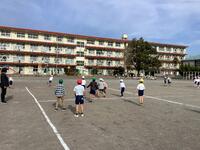 体力アップコンテストに取り組んでいる2年生です。ドッチボールラリーに挑戦していて、自分たちでボールの投げ方や取り方のよりよい方法を考えて、何度も何度も繰り返し練習しています。頑張れ!!