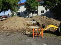 よりよい学校になるようにと、工事関係者の方が、暑い中進めてくれています。