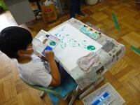 3年生では、絵の具の学習として、「カラフルヘビ」を描いていました。
