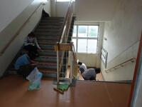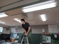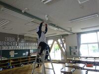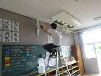 教室の扇風機、エアコンフィルター、廊下・階段のテープ貼り、トイレ等、