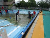 おやじの会の皆さんは、プールをきれいにしていただきました。