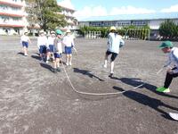 2年生「体育」の様子です。運動場でなわとびを行っていました。