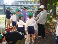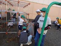 朝、ペア活動で「落ち葉拾い」を行いました。