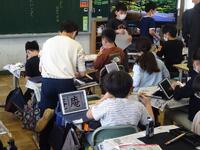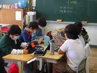 3年生は、係の掲示物をiPadのメタモジを活用して、友達と一緒に作成していました。