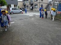 1年生の交通安全教室が行われました。実際に道路に出て行いました。