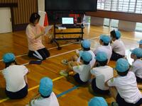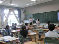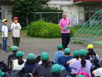 6月7日、学校に不審者が侵入した場合に備え、不審者が授業中の教室に侵入したという想定で対応訓練をしました。子供たちは先生が不審者をなだめている間に避難し、教室には他の職員が駆けつけ机や椅子、さす股を使って不審者の動きを封じながら警察官の到着を待つちました。この後、Zoomを通して、子供たちは、警察官から登下校の際に不審者からの声掛けなどに気を付けるようお話を聞きました。