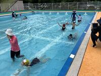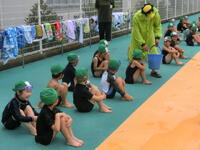 4,5,6,7,8組がプール開きを行いました。プールの中で走ったり、手をついてワニをしたり、プール内に入れた輪を拾ったりして、楽しんで水に慣れる活動を行いました。薄曇りでしたが、子供たちは元気いっぱいでした。