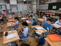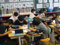 先生に教えてもらう子、個人で進める子、グループで進める子と学習方法を選択していました。