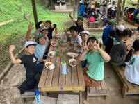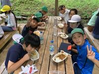 夕食作りは、ファイヤースターターで火をつけるところからチャレンジしました。うまく火がつくと「やった!」と次々に声が上がりました。メニューはレトルトカレーですがみんなペロリと平らげていました。