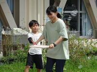 大きなしゃぼん玉、いくつも連なるしゃぼん玉等を楽しんでいました。