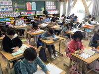 2年生の授業の様子です。クラスのお別れ会の話合いを自分たちで進めたり、よい姿勢で落ち着いた雰囲気で書写を行ったりして、落ち着いて活動しています。また、iPadを活用して算数のプログラミングに挑戦し、適切な指示になるよう試行錯誤している姿が見られました。